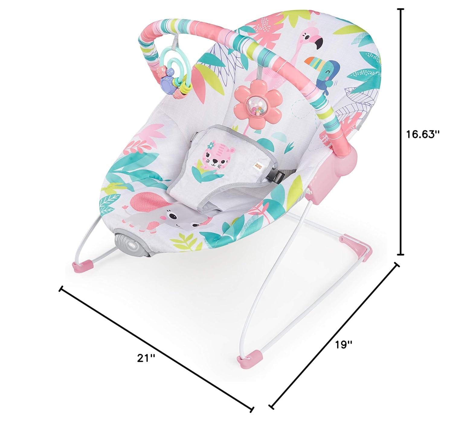 imageBright Starts Baby Bouncer Soothing Vibrations Infant Seat  Removable Toy Bar Nonslip Feet 06 Months Up to 20 lbs Rainforest VibesFlamingo Vibes  Pink