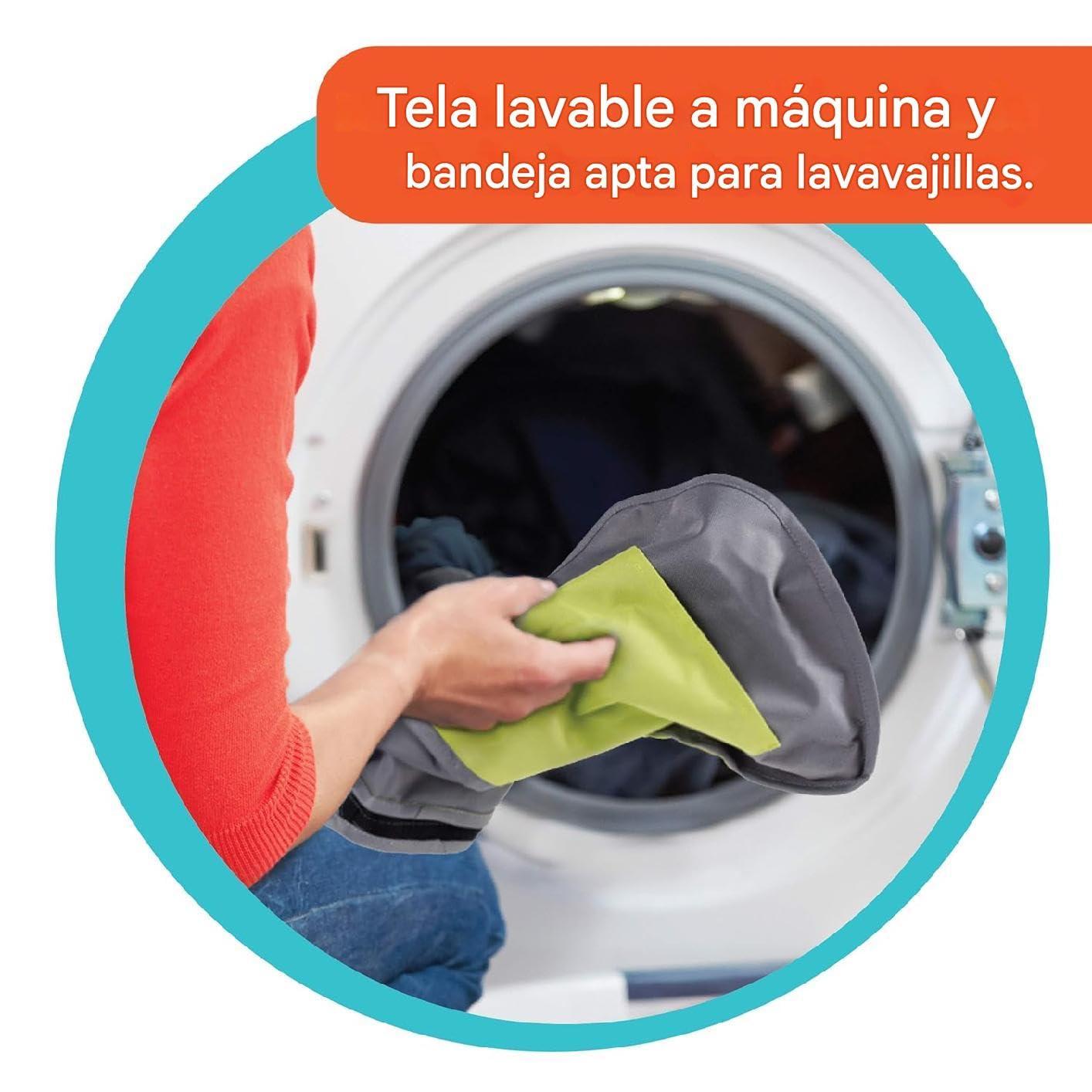 When mealtime gets messy, cleanup is quick and easy thanks to the wipe-clean fabric and dishwasher-safe tray with cup holder