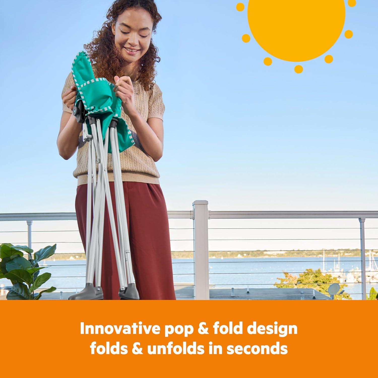 Innovative pop and fold design makes this an ideal choice for travel with easy setup and takedown in seconds; includes carry bag with strap for portability