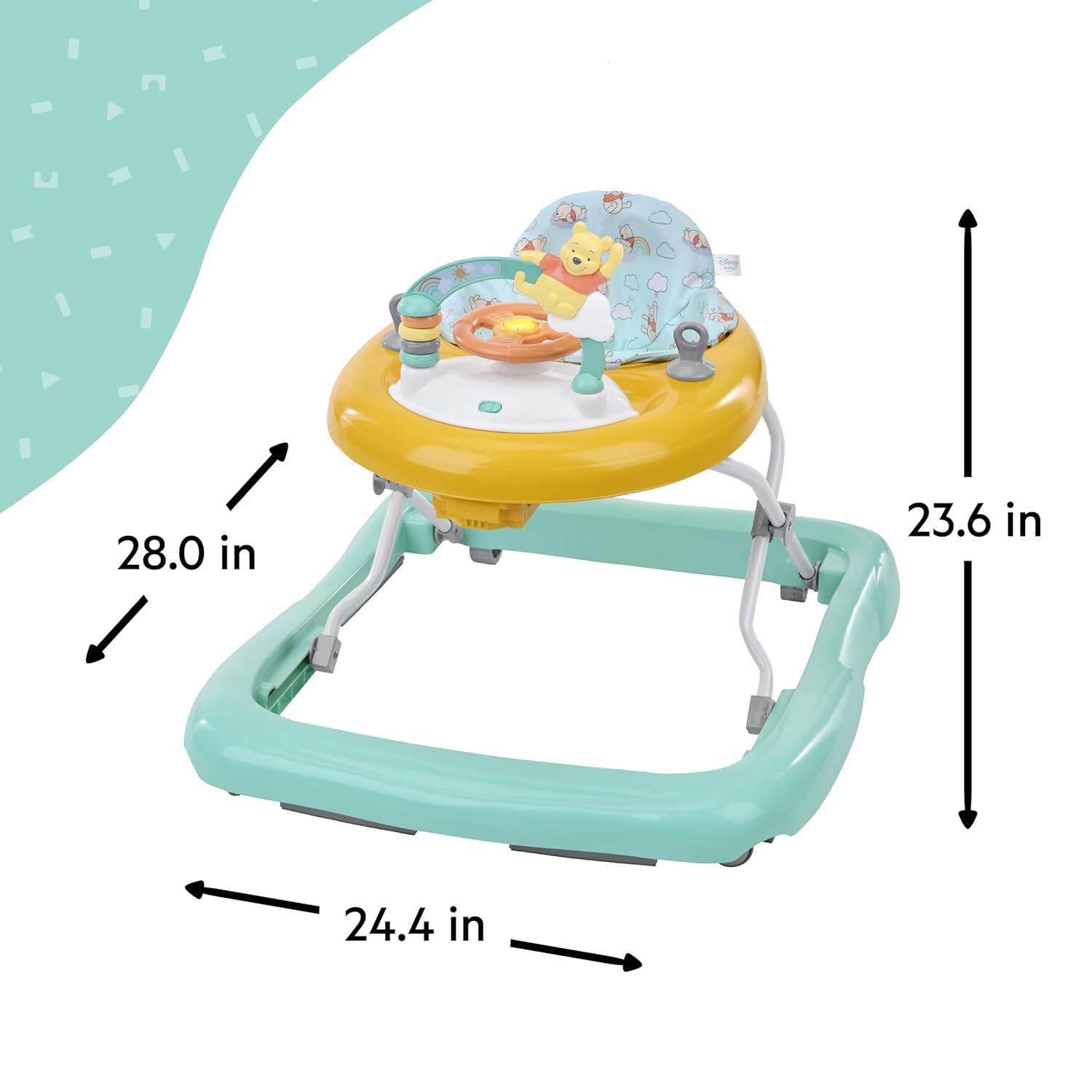 It’s time to strut and explore with Disney Mickey Mouse! Your baby will love to cruise around the house with their original bestie in this baby walker toy from Disney Baby and Bright Starts. Before baby can walk on their own, Mickey Mouse is the biggest cheerleader with lights, songs and sounds to entertain your little one. The toy station is removable for on-the-go fun and magical details like a roller with spinning beads, light up steering wheel and baby safe mirror. Parents and babies alike will love Mickey’s colorful details like the teal and light gray color scheme and of course those iconic Mickey Mouse ears. And the walker is sure to fit your baby juuuuuust right with easy to adjust 3 height positions – just like magic!