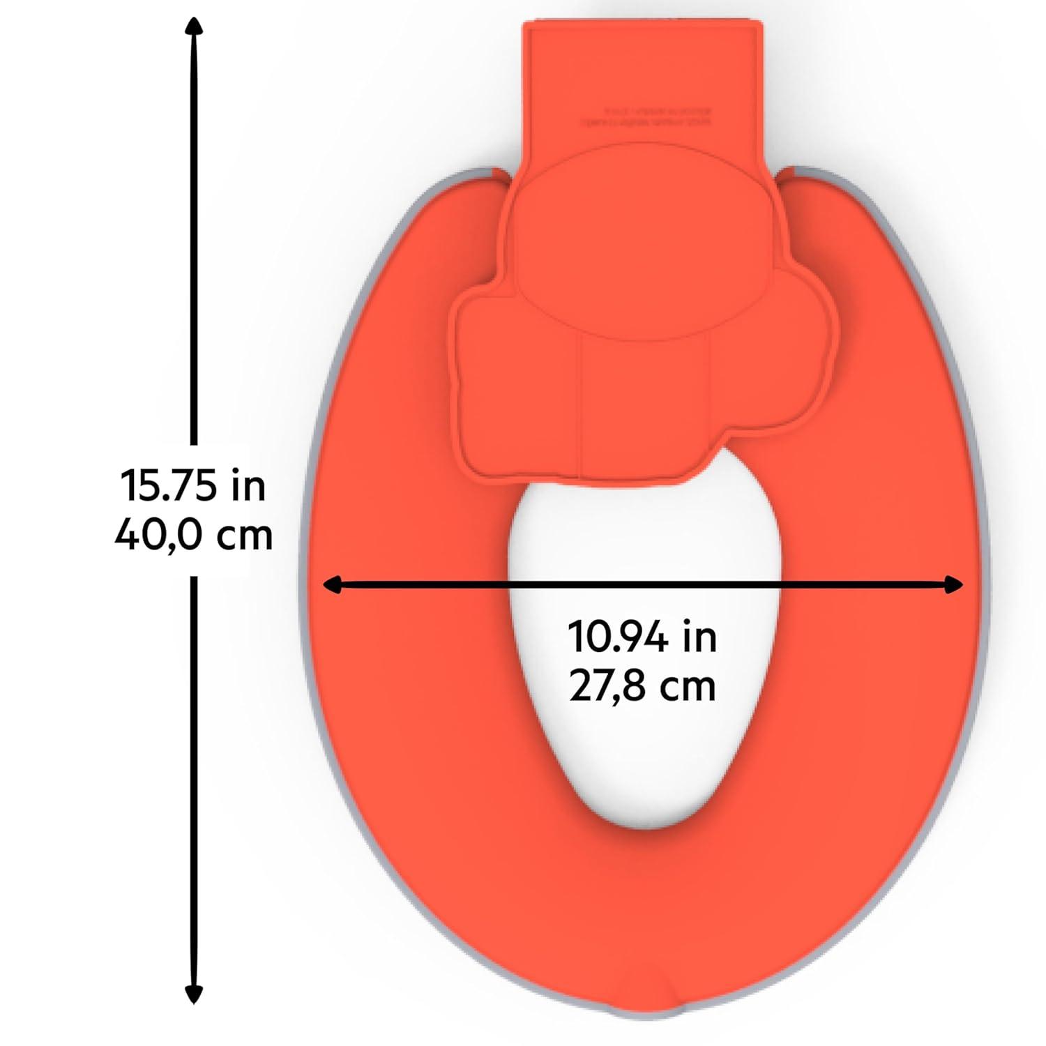 Allows adults to still easily use the toilet during the potty training process; simply flip it up and out of the way; assembled dimensions are 9.75″ x 1.75″ x 15″