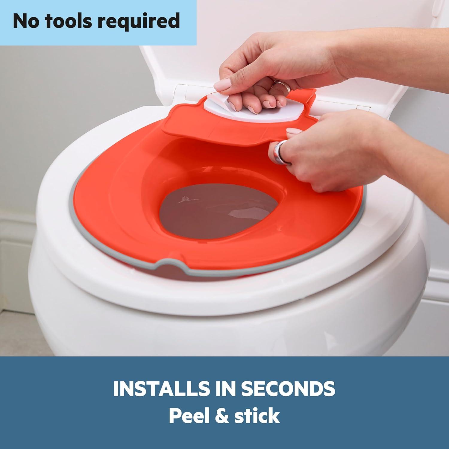 Fits most round, elongated, and D-shape toilets; avoid excess clutter in the bathroom with this potty training toilet, which takes up less space than a traditional toddler potty