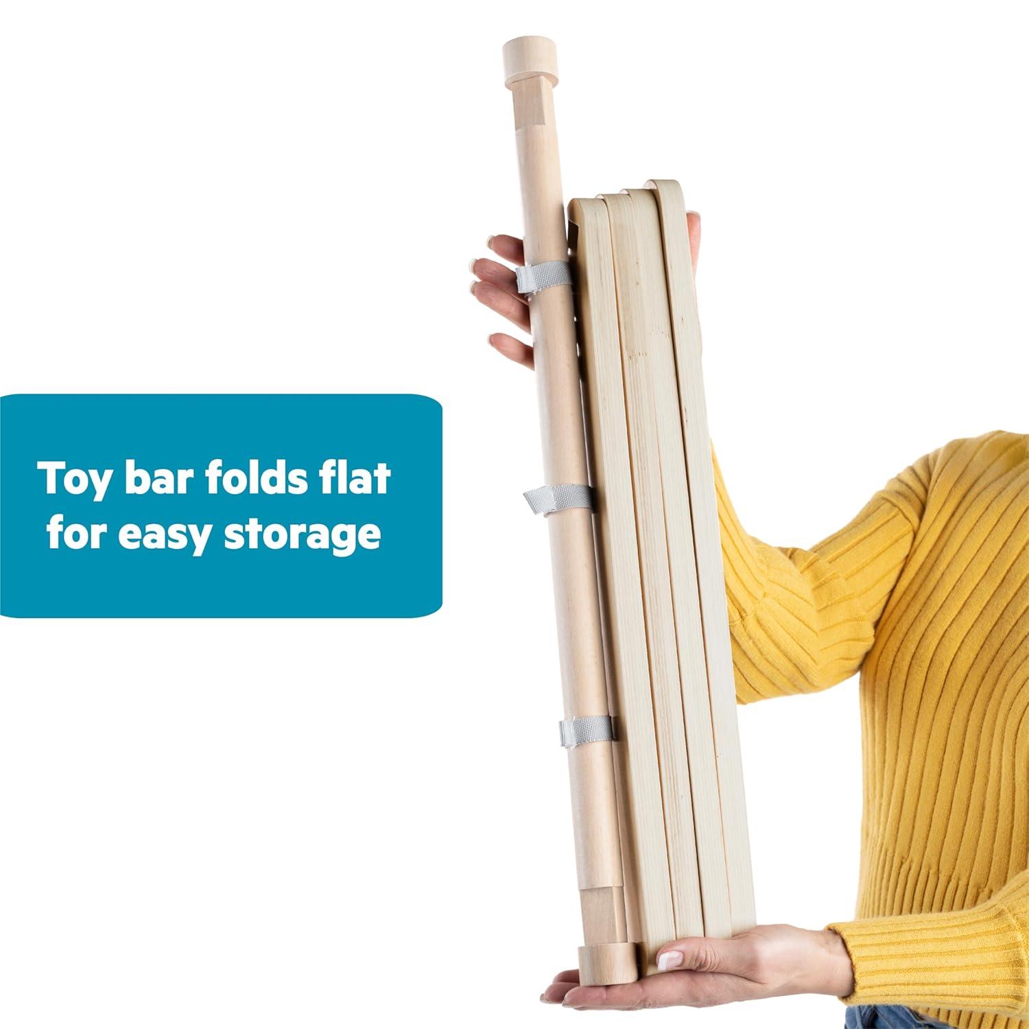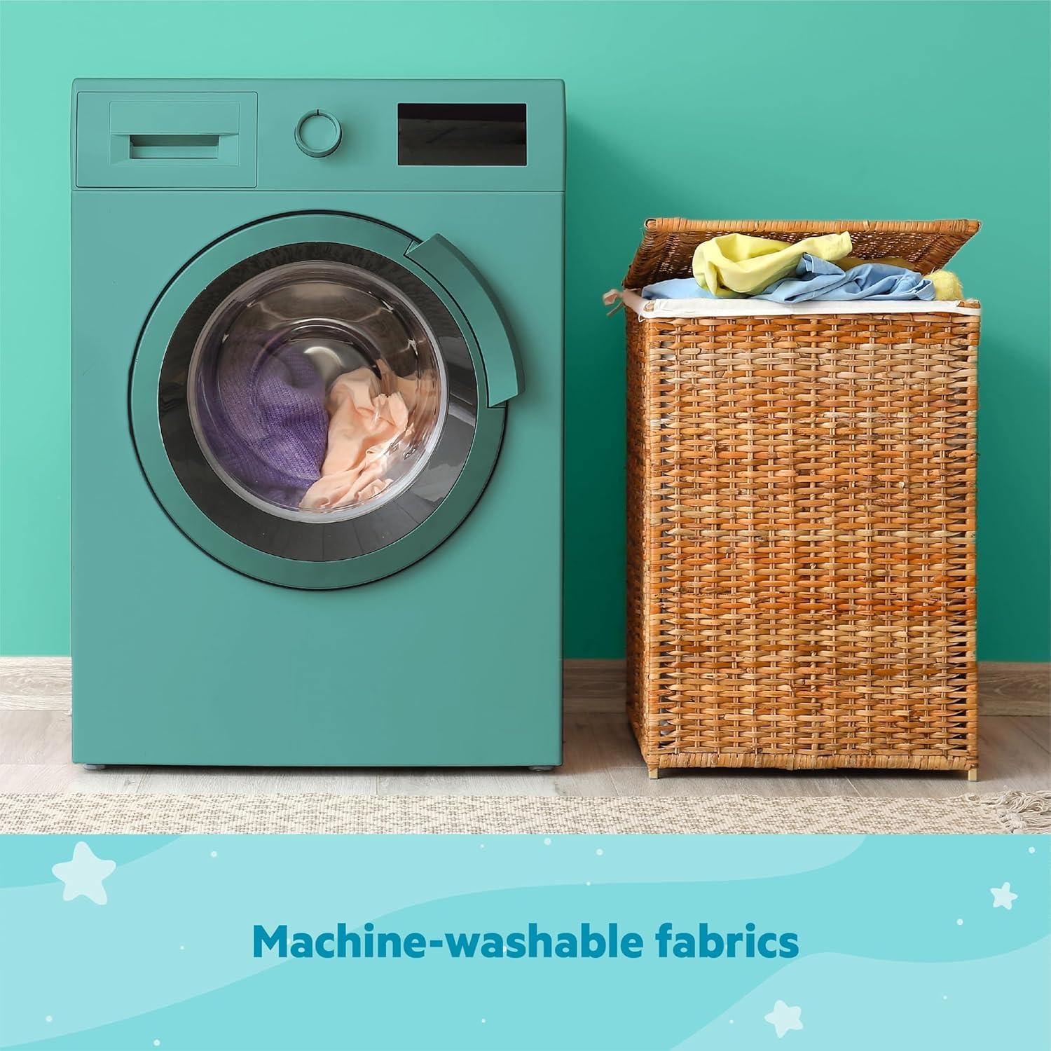 Easy to clean with machine washable pad and wipeable toy bar & canopy; powered by 3 AA batteries (not included); suitable for newborns & up; dimensions: ‎22.8″ x 33.9″ x 32.7″