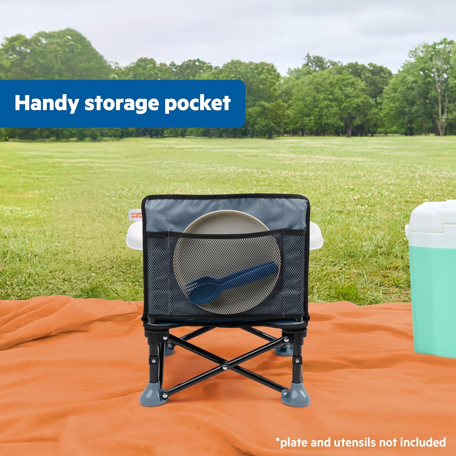 Get to know the original Pop N Sit from Bright Starts, with over 2 million sold! From inside to out, baby to toddler, and mealtime to playtime, this multi-purpose travel booster offers your little one a secure place to sit. Features 3 modes of use: floor seat, feeding seat with removable tray, and toddler booster. For babies, attach to an adult chair using the included straps and BPA free tray to create a portable chair top high chair. For toddlers, use the seat as a booster that can pull up to the table by removing the tray. In floor mode, you can use the Disney Minnie Mouse Pop N Sit whenever you need an extra seat – picnics, sporting events, or right at home! The rear storage pocket holds your daily essentials. Folds compactly when not in use and includes a carrying bag with shoulder strap. Features a dishwasher safe tray and machine washable seat pad. Dimensions: 15 x 13.5 x 14.75 or 5 x 15 when folded. Made for 6 months to 3 years old or up to 37 pounds.