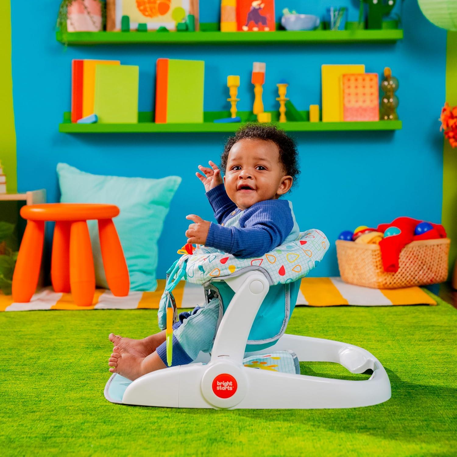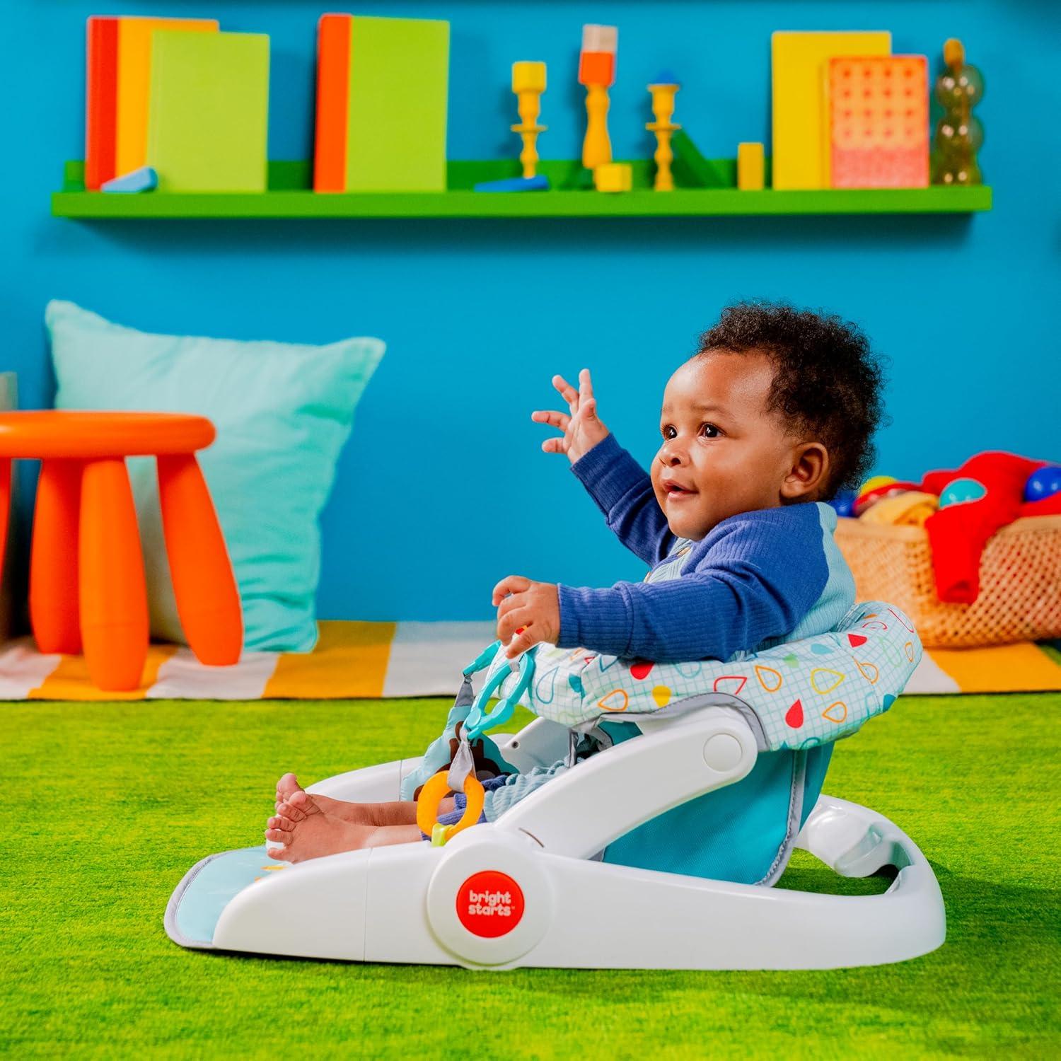 Give baby a front row seat to all the family action with the Learn-to-Sit 2-Position Floor Seat from Bright Starts! This baby seat bridges the gap from bouncer to booster seat as baby learns to sit up independently. In the lower position, younger babies can sit comfortably and safely when they can hold up their head independently (around 4 months old). Older babies can use the upright position to provide comfortable support as they learn to sit on their own. Designed for baby’s comfort, this floor seat features a padded seat and plenty of leg room. The high seat back offers additional support, helping prepare them to sit independently. The Learn-to-Sit also entertains baby while freeing up more hands-free time. Includes a soft rainbow toy and textured leaf toy, plus looped Taggies ribbons for entertainment and comfort. Easy to bring on the go as a travel baby seat – just fold flat for travel or storage! Seat pad is removable and machine washable. This grow-with-me floor seat is ideal for babies 4 – 12 months. Discontinue use when baby is able to climb or walk.