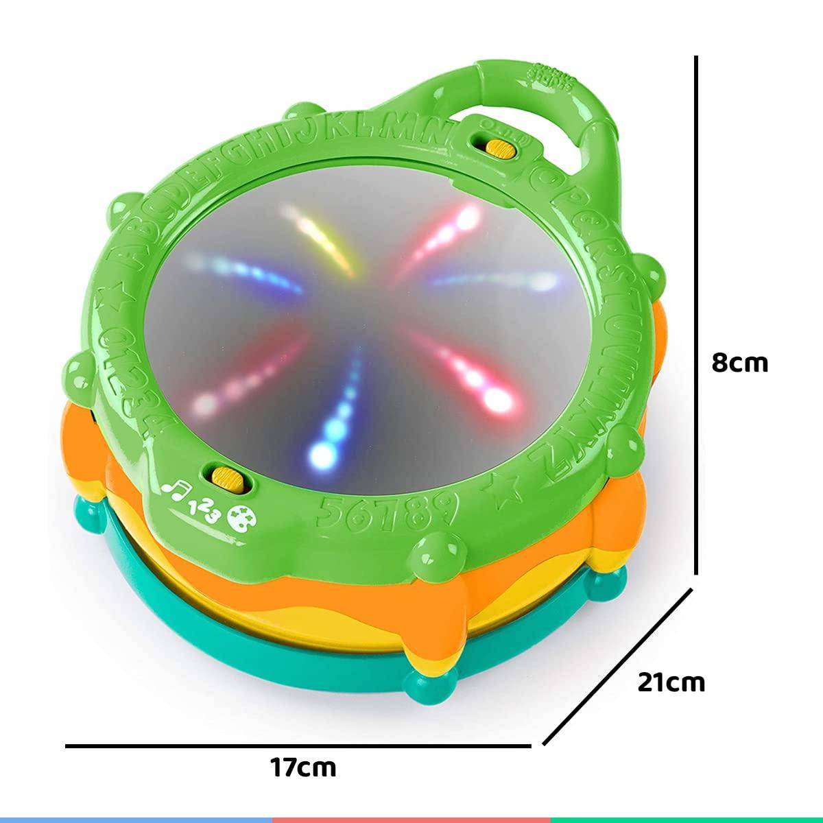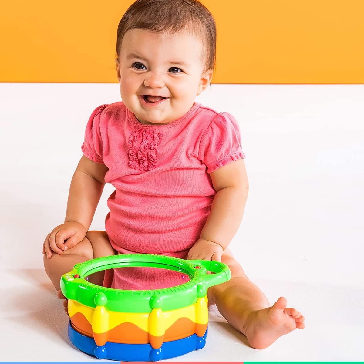 Drumroll, please! Baby’s going to tap-tap-tap into his creativity with the Light and Learn Drum. Your baby will ooh and ahh when he discovers the power to create a magical light show using just the pat of his hand! And he’ll feel like a rock star while practicing numbers and colors. Help your baby count along in number mode, and watch the lights change to correspond with colors in color mode. Thanks to an easy-to-hold handle, baby will be off touring the world in no time. You and baby can drum up the joy wherever you are, with hours and hours of fun.