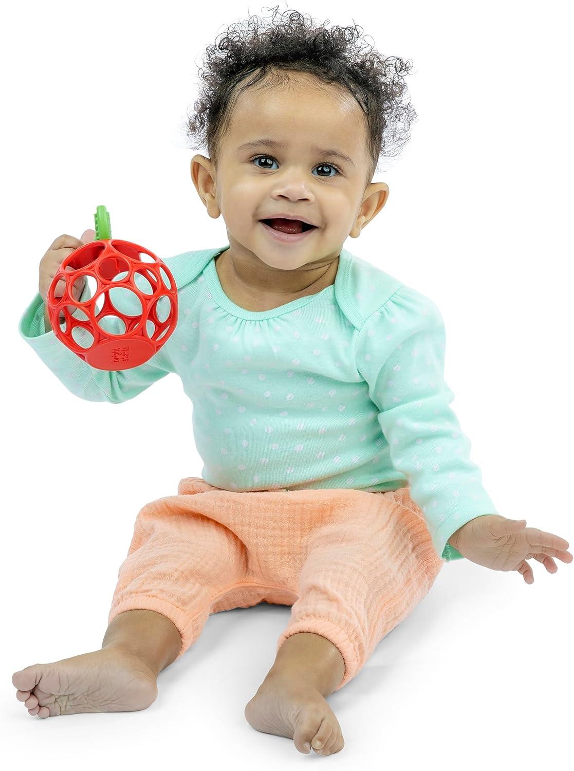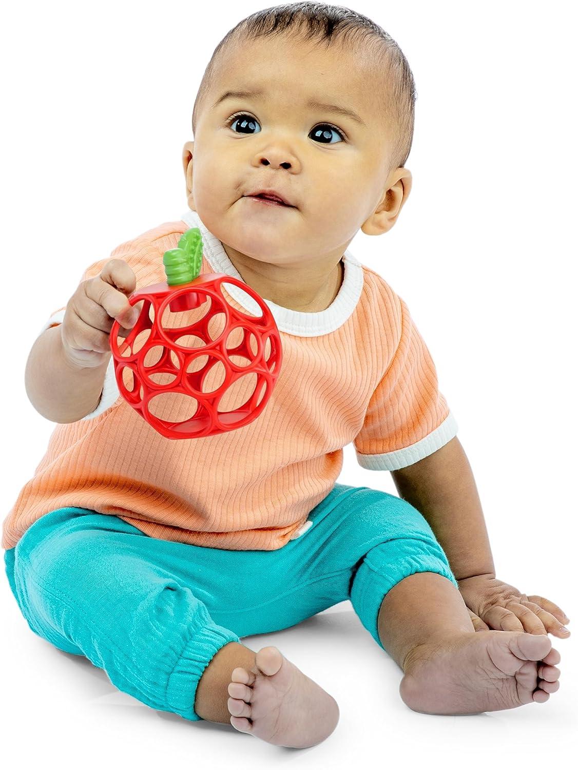 Bright Starts Oball Easy Grasp Red Apple Teether Toy, Hold My Own Collection, BPA Free, Unisex, Newborn and Up(Apple)