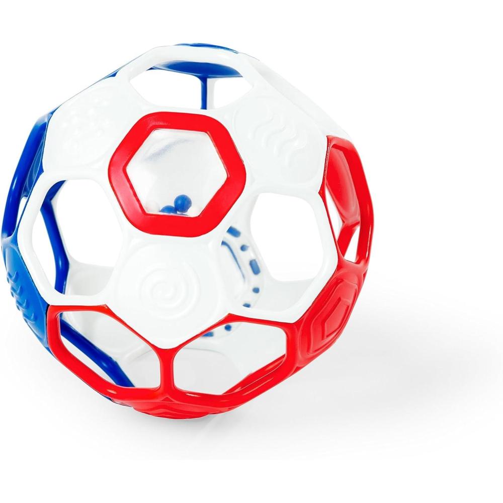 Bright Starts Oball Easy Grasp Red Apple Teether Toy, Hold My Own Collection, BPA Free, Unisex, Newborn and Up(Red White & Blue Soccer Ball)