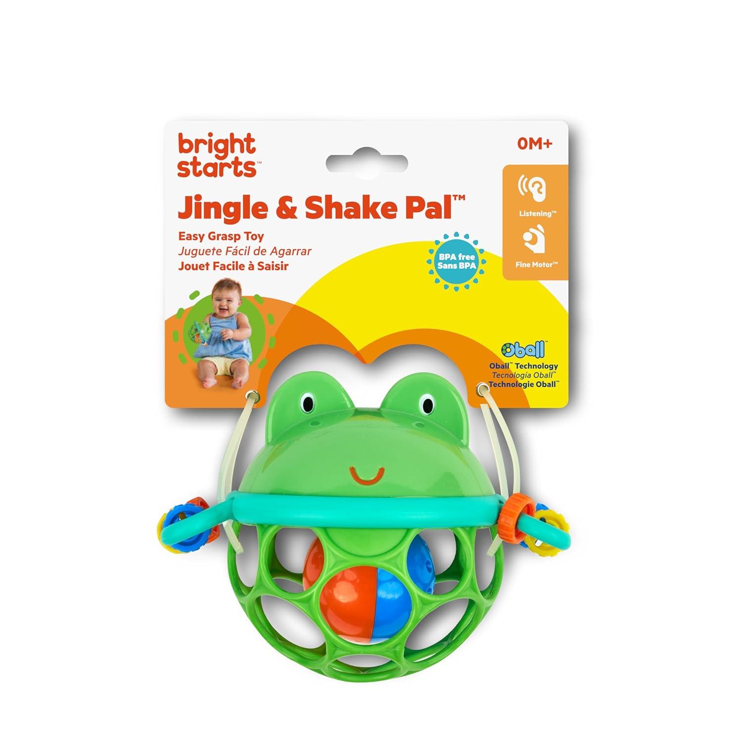Bright Starts Oball Musical Toy, Jingle & Shake Pal, BPA-Free Easy-Grasp Baby Rattle Toy, Ages Newborn+(Green)