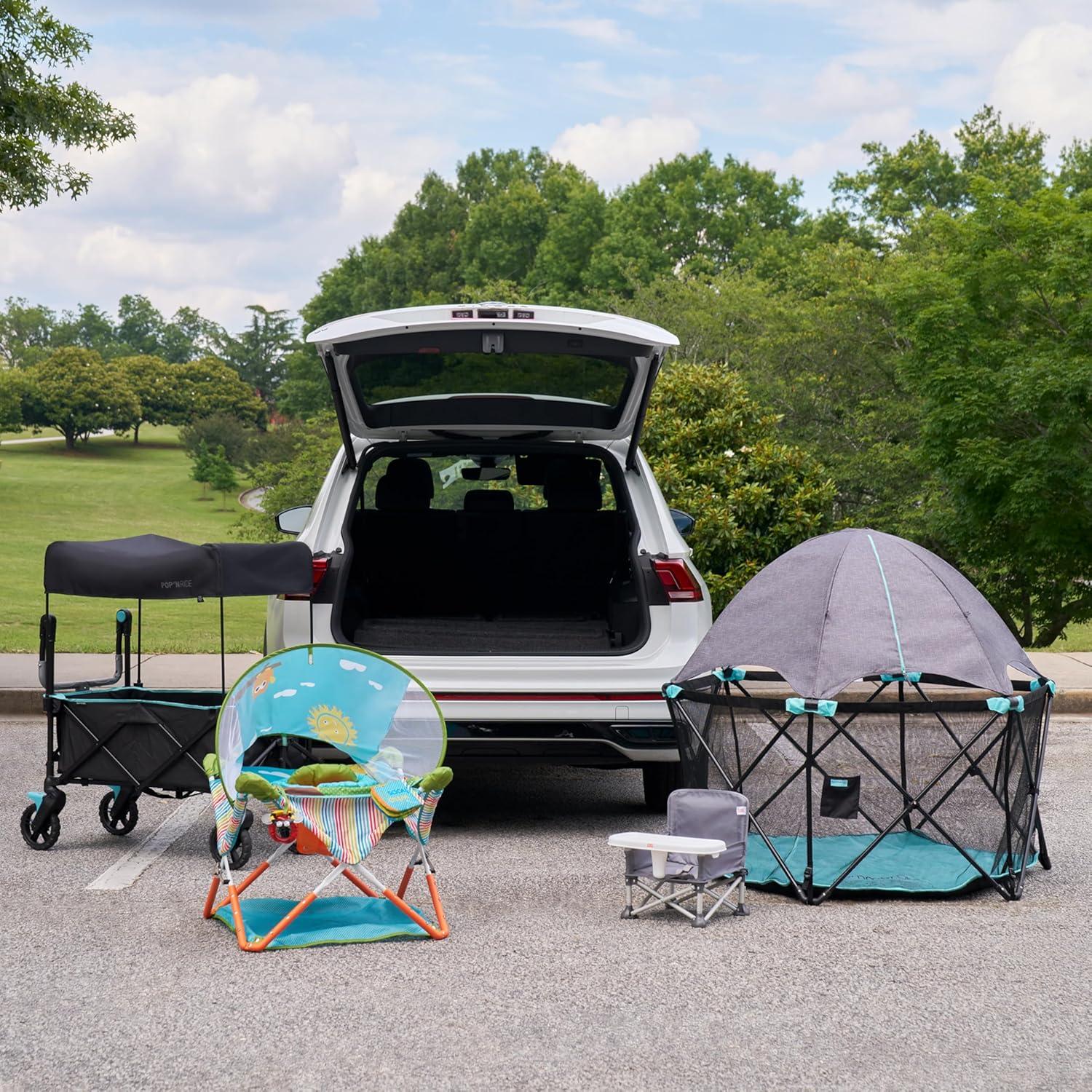 Jump into fun with the innovative Bright Starts Pop N Jump, featuring a convenient pop-and-fold design; for indoor and outdoor use and easy travel