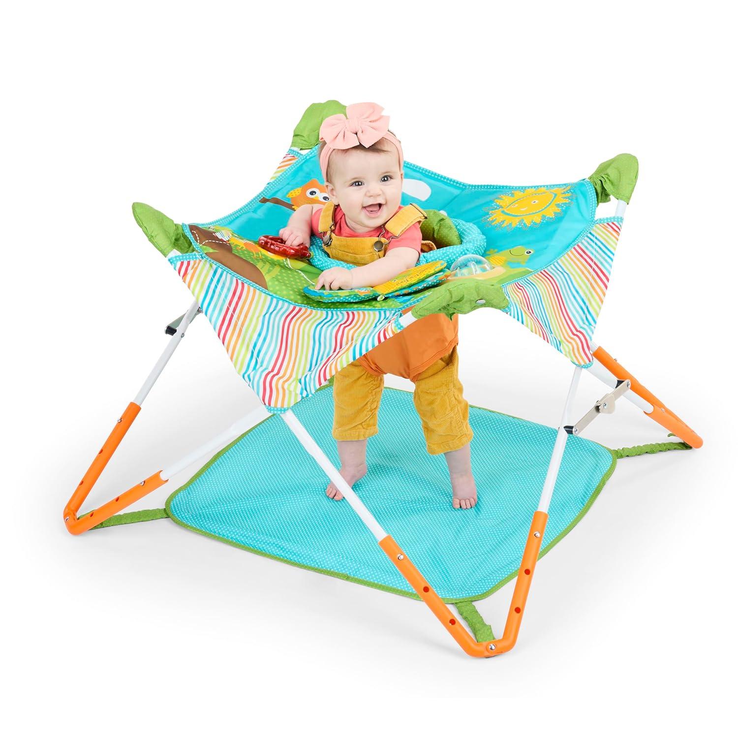 Jump into fun with the innovative Bright Starts Pop N Jump, featuring a convenient pop-and-fold design; for indoor and outdoor use and easy travel