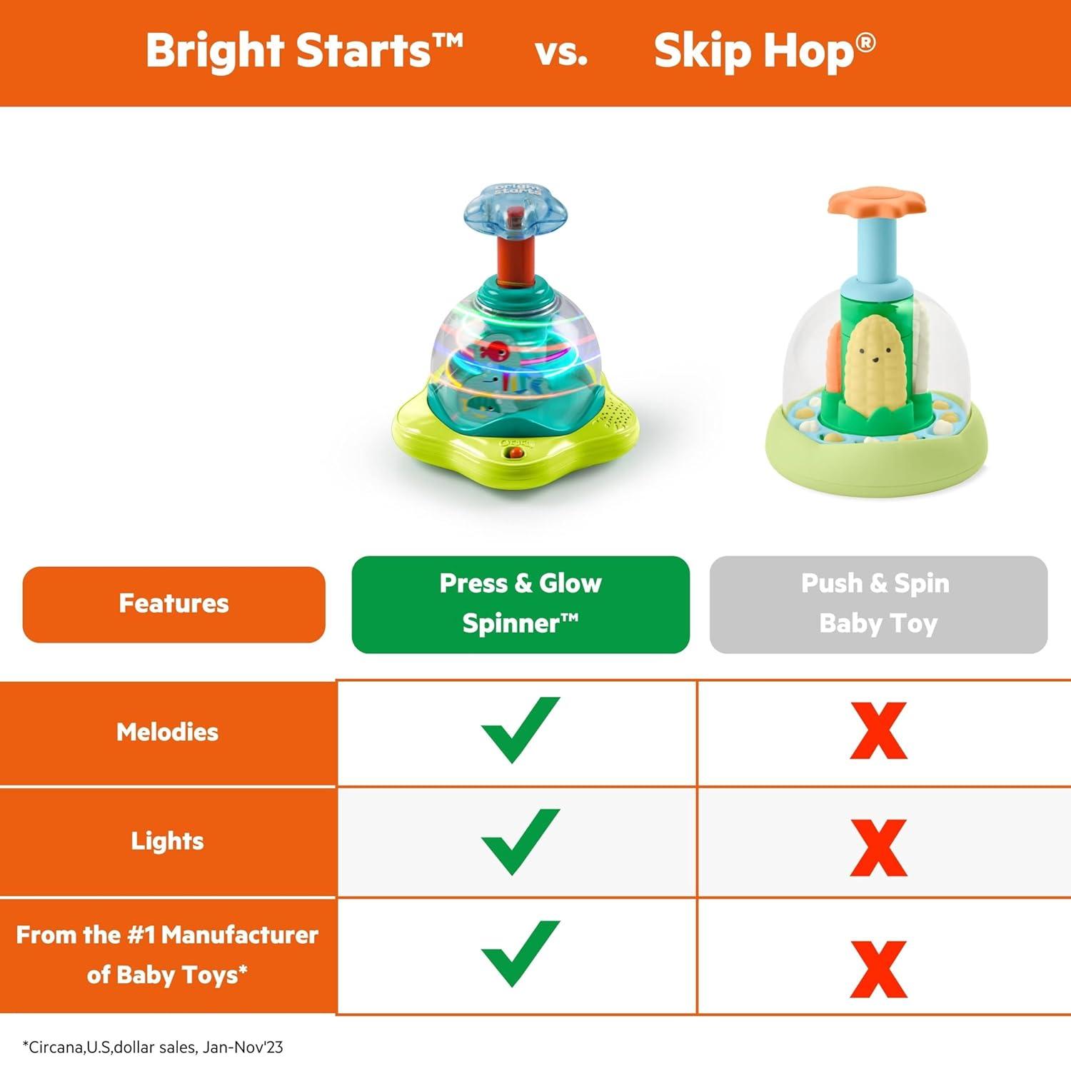 Bright Starts Press & Glow Spinner Cause and Effect Musical Baby Toy, Age 6 Months+(Press & Grow)