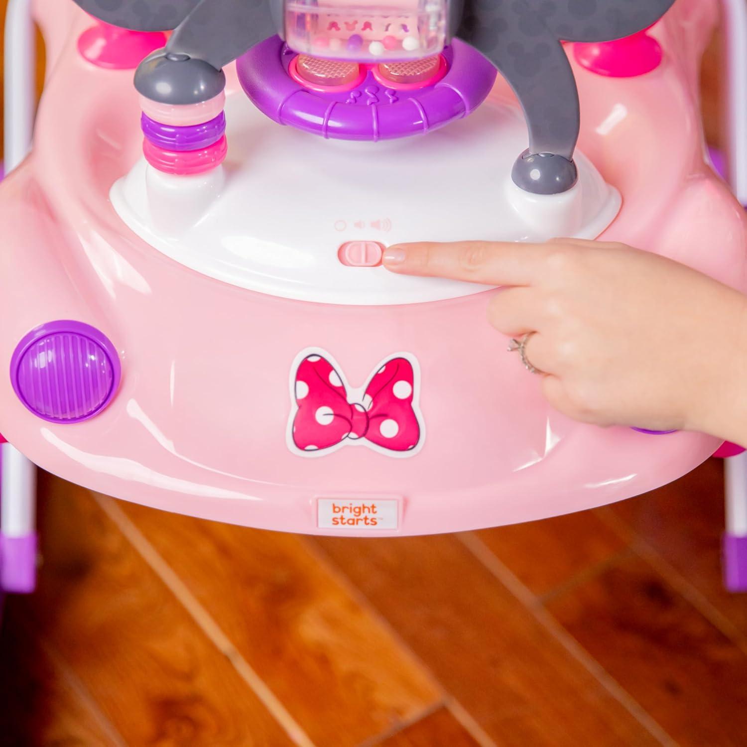 imageBright Starts Tiny Trek 2in1 Baby Activity Walker with Toy Station Adjustable Height and EasyFold Frame Jungle Vines Age 6 MonthsMinnie Mouse Go  Go Bows