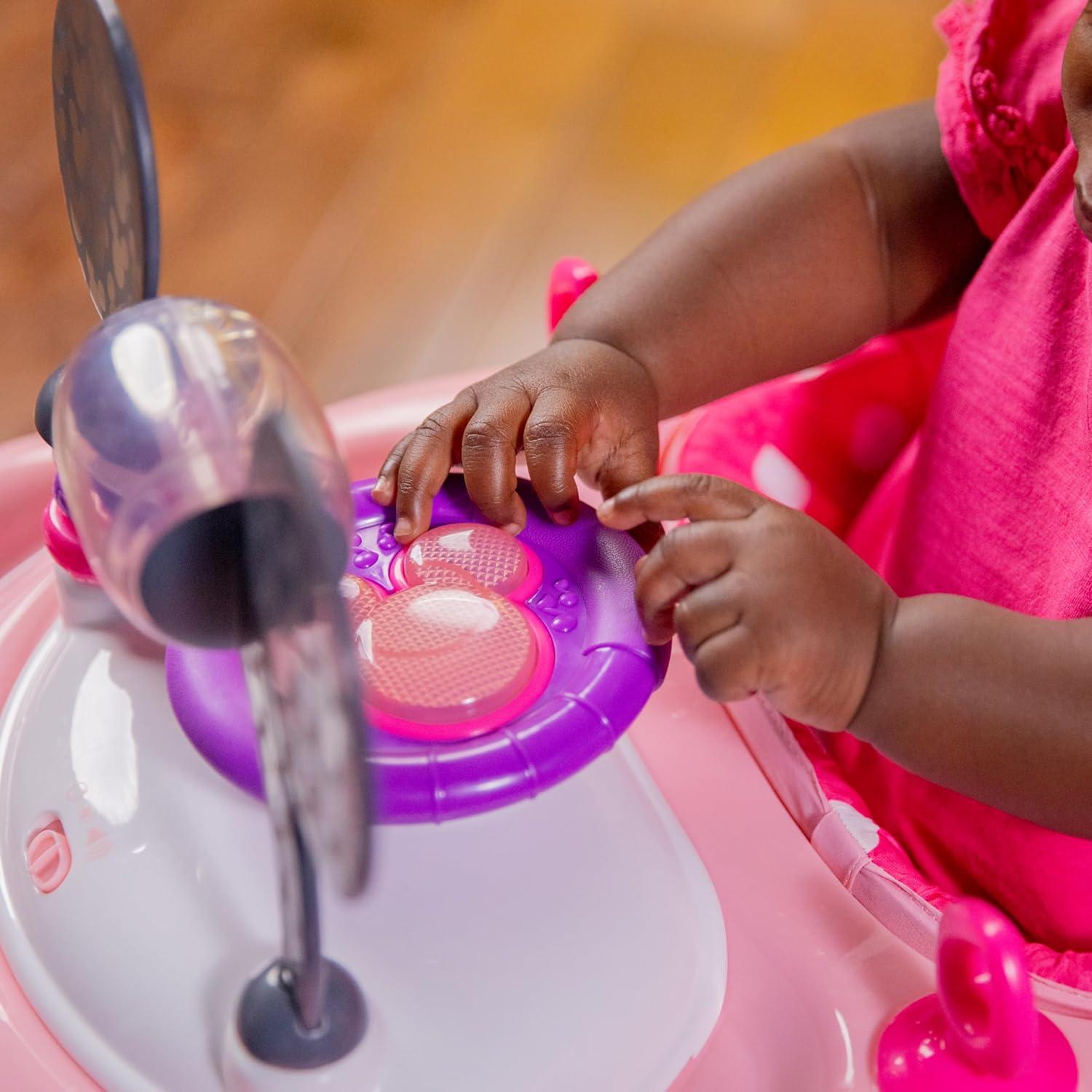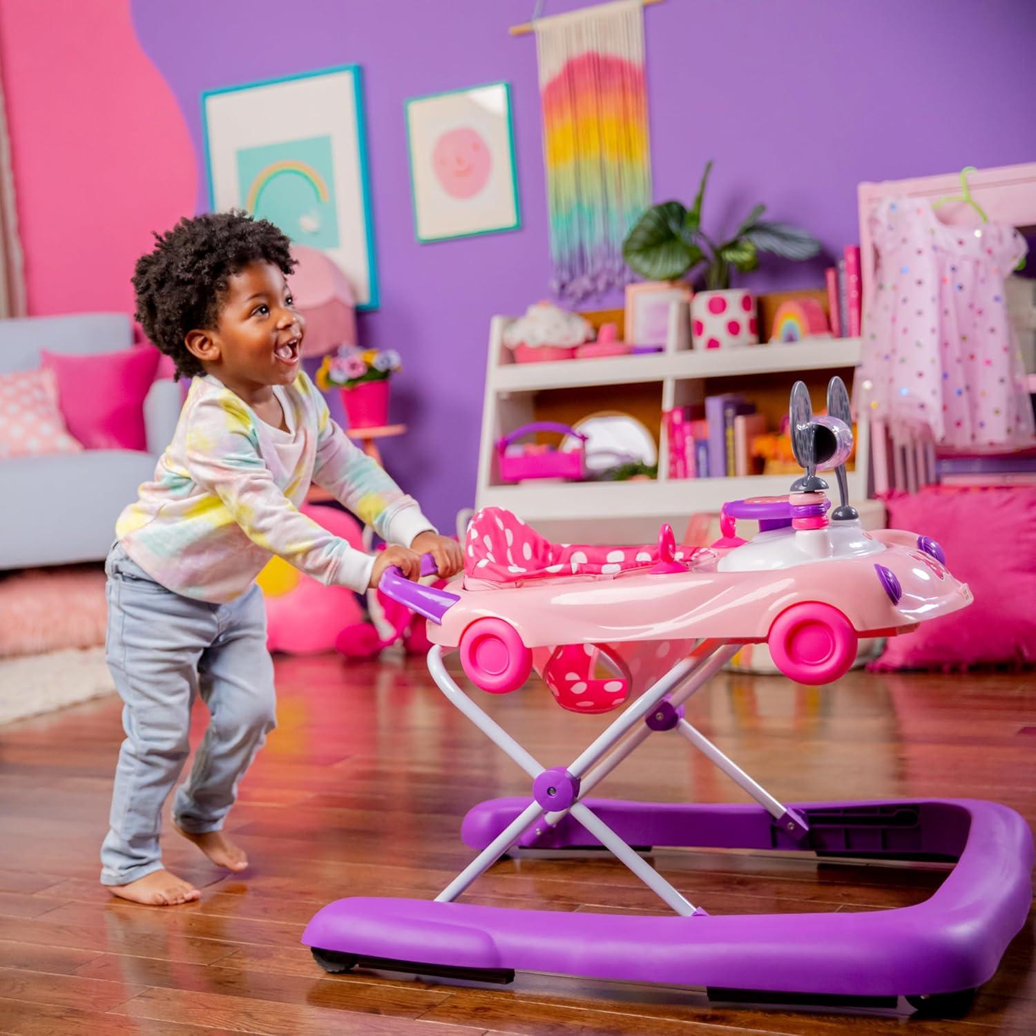Bright Starts Tiny Trek 2-in-1 Baby Activity Walker with -Toy Station, Adjustable Height and Easy-Fold Frame, Jungle Vines Age 6 Months+(Minnie Mouse Go Go Bows)