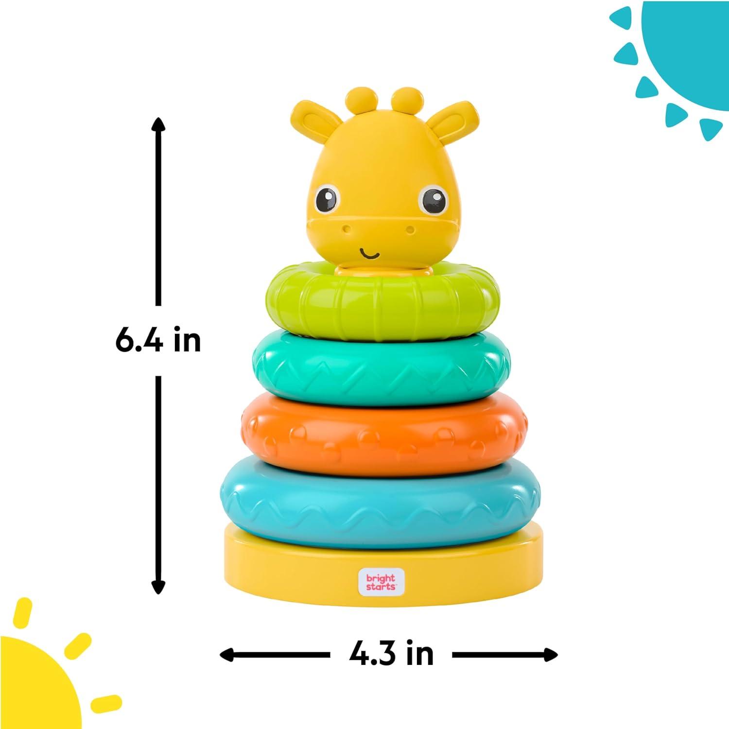Bright Starts Treat Tower Stacking Toy with Teether in Cupcake and Donut Shapes, Develop Fine Motor Skills, Unisex, 6 Months+(Giraffe Tower)