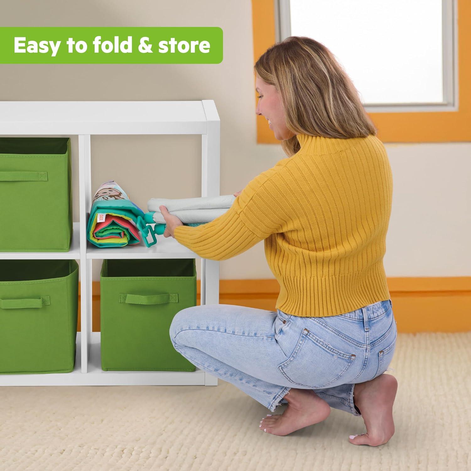 Easy to Store: New space-saving FoldAway toy bar offers plenty of playtime entertainment while conveniently folding for compact storage; remove and fold the detachable toy bar and fold or roll up the play mat to tuck away when not in use.